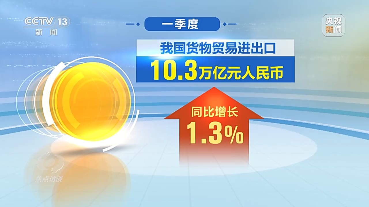 一季度,我国货色商业进出口10。3万亿元人平易近币,同比增加1。3%。进出口规模创汗青同期新高,持续8个季度跨越10万亿元。此中,出口规模冲破6万亿元,实现6。9%的较快增加,正在压力下展示了较强的韧性。